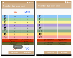 Para controlar a pontuação do 7 Wonders tem o 7 Wonders Score Card (Android) e também uma versão para o 7 Wonders Duel, o 7 Wonders Score Sheet