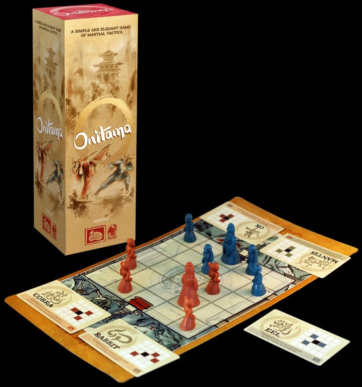 Onitama é uma espécie de xadrez onde os jogadores compartilham as cartas de movimento das peças, fácil de aprender mas difícil de dominar.