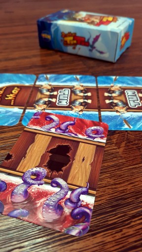 No exemplo abaixo, se a carta do Kraken (uma espécie de lula gigante que atacava os barcos na mitologia nórdica) for jogada ela cobre uma sessão do barco e por isso os jogadores agora deverão cantar um TUM à menos, ou seja o jogo fica ainda mais rápido.