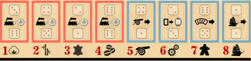 Cada barão controla algumas províncias e precisa produzir recursos como café, algodão, couro e cana de açúcar, além de comprar melhorias que permitem produzir mais ou transportar suas mercadorias para região portuária para exportação.