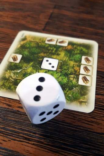 A maneira de produzir recursos com os dados e girando os terrenos é muito bacana, pois você começa com 6 terrenos com números de 1 a 6, sendo assim você sempre recebe algum recurso com a rolagem dos dados.