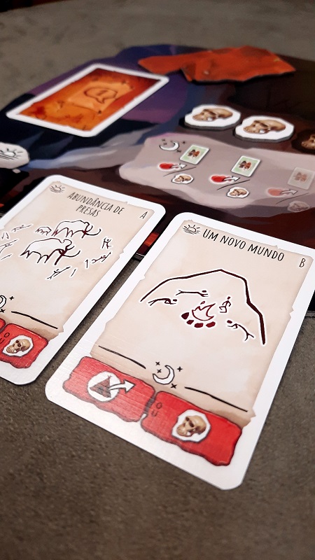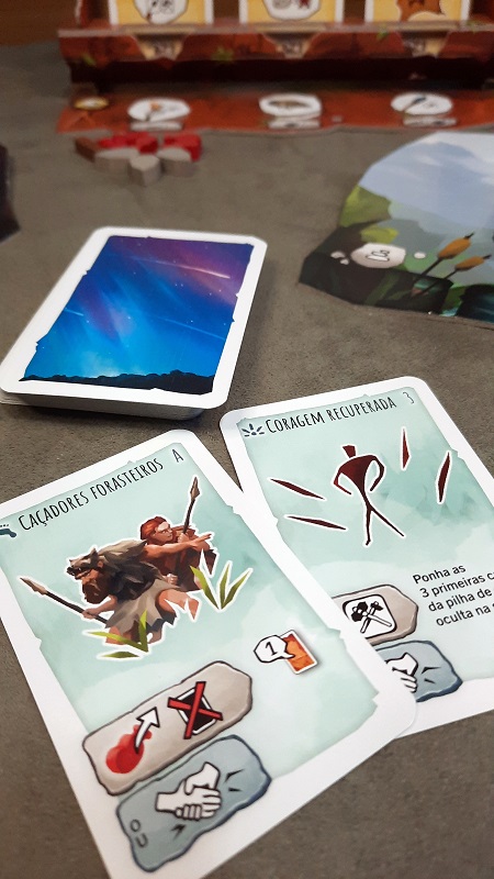 E Paleo se destaca por ser um jogo de cartas, embora todos os adereços que acompanham o jogo façam todo o sentido para criar um baita experiência, ele não deixa de ser na sua essência um jogo de cartas.