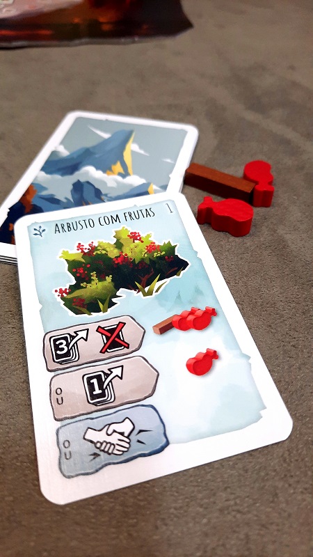 Como a carta ao lado “Arbustos com frutas” que fornece 3 possibilidades para o jogador:
