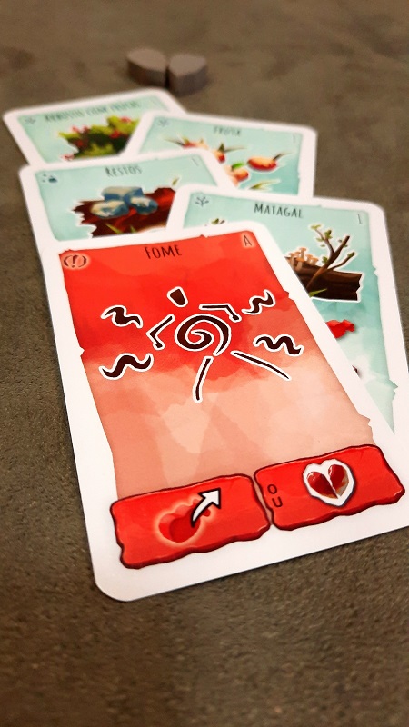 • Descarta 3 cartas, remover essa carta do jogo e receber 1 madeira e 2 comidas