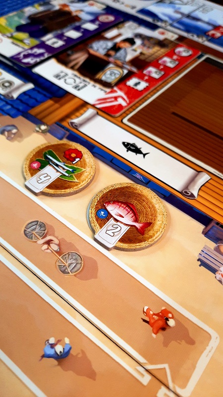 Ainda existem espaços no tabuleiro central que ao parar permitem aos jogadores comprar peixe, tabaco e cachimbos que podem render pontos no momento e ao final da partida.