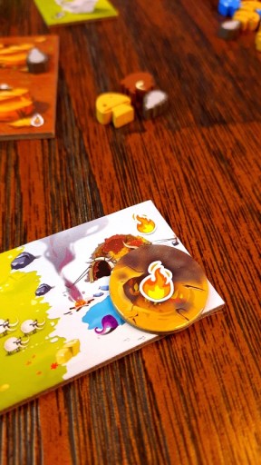 As fichas de fogo servem para multiplicar o valor dos terrenos e existem tanto peças já com o símbolo do fogo quanto as peças colocadas pelos vulcões.