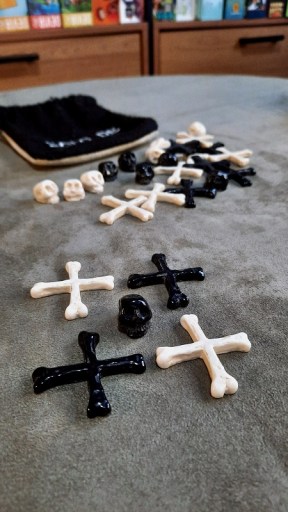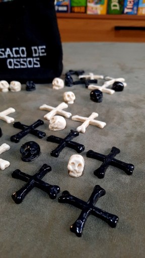 Já o Saco de Ossos é uma disputa bem legal para 2 pessoas ao estilo jogo da velha onde você precisa alinhar 3 caveiras suas ou montar uma cova com 4 ossos da sua cor o que parece fácil mas não é não.