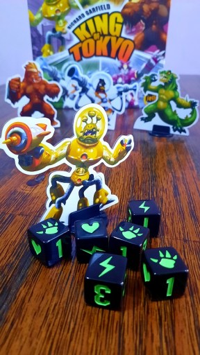 Então o King of Tokyo é aquele jogo com uma proposta bem clara e definida: Dar risadas, passar raiva, eliminar e ser eliminado em partidas rápidas sem complicação.