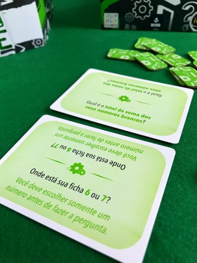 Para deduzir os números na sua vez você escolhe uma das perguntas que está aberta no centro da mesa e essa pergunta é lida e respondida pelos seus oponentes.