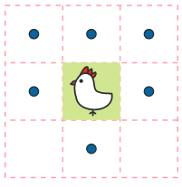 Se o pintinho chegar na zona adversária (floresta ou céu) ele é promovido e vira um valente galo, que movimenta-se da seguinte maneira